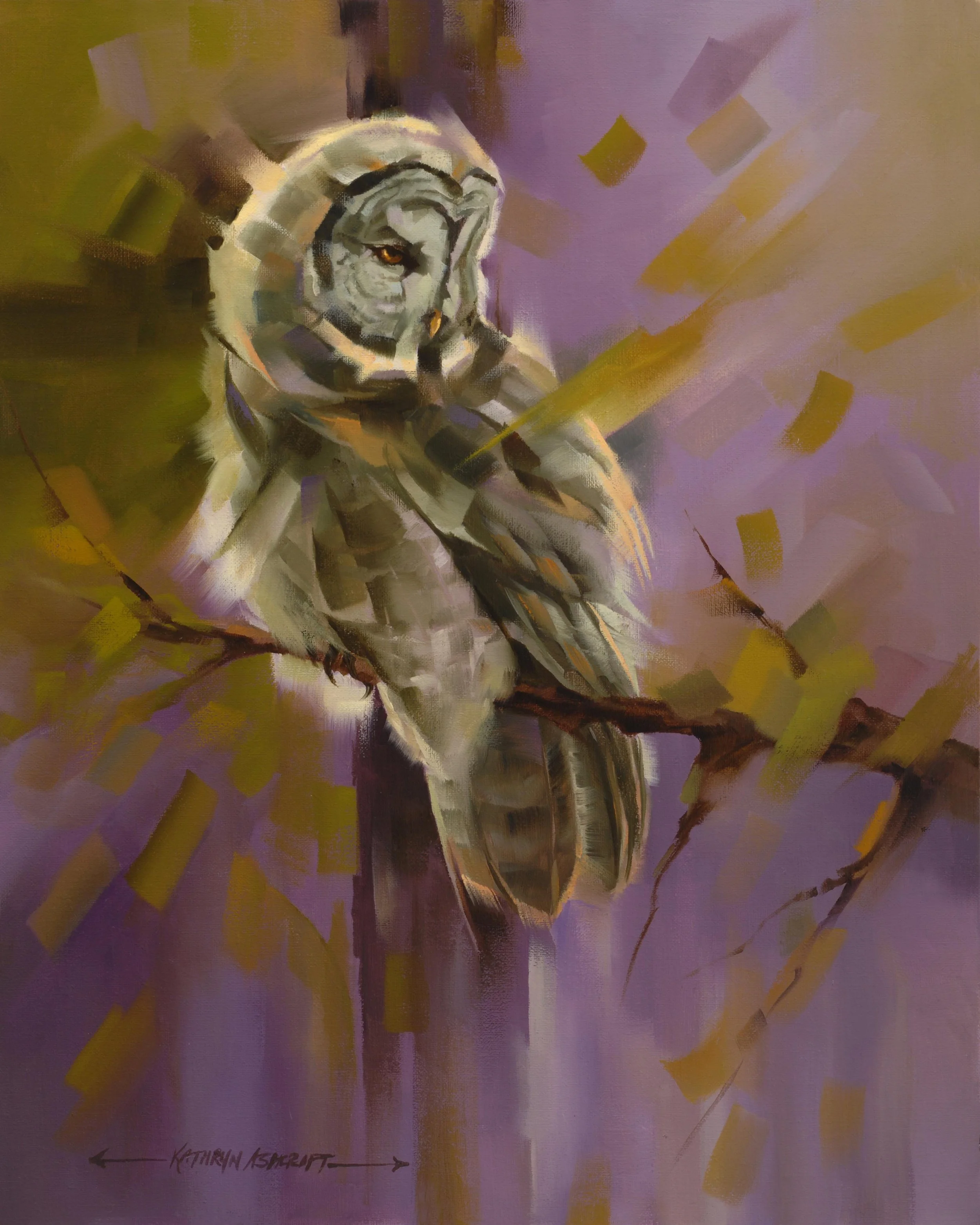 Kathryn began working in oils in 2004. Striving to convey the essence of the animal, as opposed to a detailed depiction, she uses a loose, painterly style. Abstract backgrounds bring the focus of the painting to the animal itself.